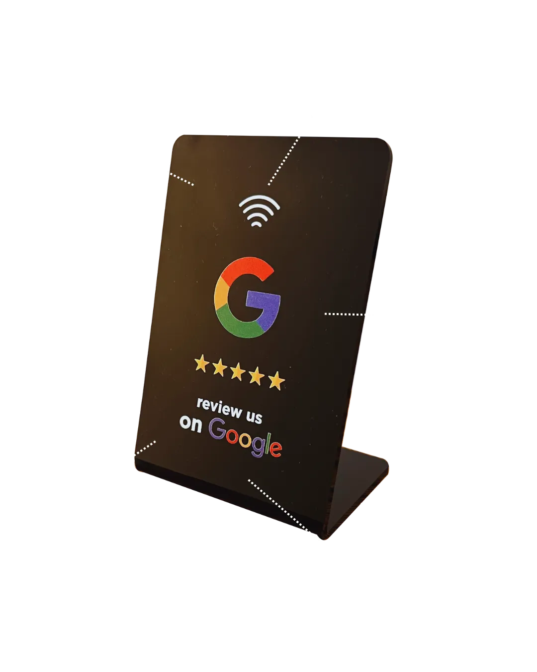 Premium Quality Acrylic Desktop Stand with an in-built NFC chip to start collecting reviews instantly